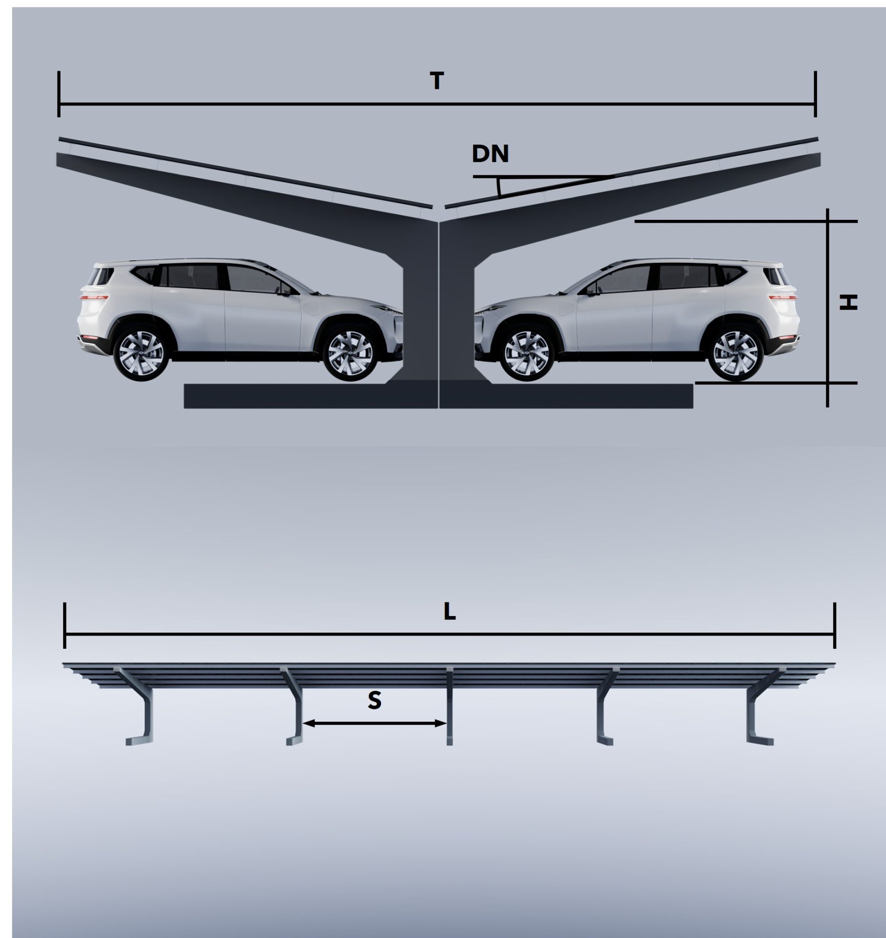 PV-CARPORT mit integriertem Fundament auf Betonbasis
