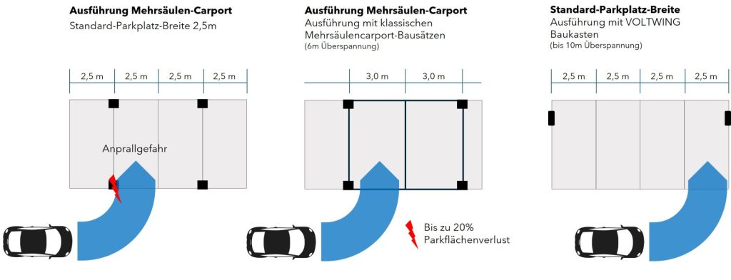 Es gibt mittlerweile unzählige Anbieter von PV-Überdachungen am Markt. Wir haben hier versucht, Ihnen die wesentlichen Differenzierungsmerkmale zwischen VOLTWINGS-PV Carports und anderen Konstruktionsformen darzulegen und einen möglichst objektiven Konkurrenzvergleich zu Solar-Carports zu erstellen – natürlich ohne auf Mitbewerber direkt einzugehen.
